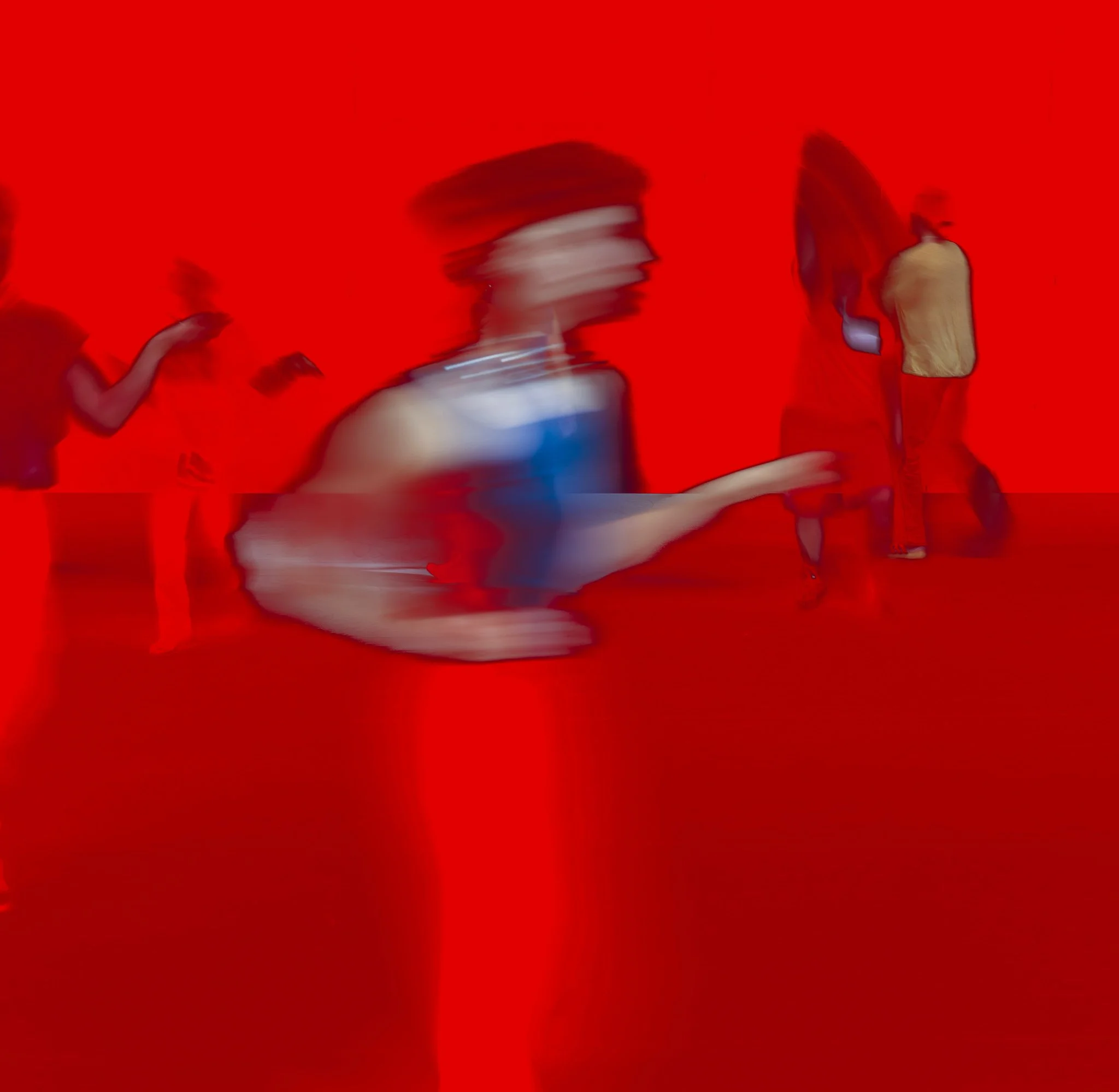 À travers un travail de post-production qui efface les détails identitaires au profit d’aplats de couleurs, les corps deviennent silhouettes, formes fluides et poreuses. Ces figures abstraites viennent brouiller les repères visuels qui nous permettent, usuellement, de classer les individus dans deux catégories imperméables. Elles forment un corps collectif, organique, en constante recomposition – une foule chorégraphiée où l’individu se dilue dans le mouvement partagé.