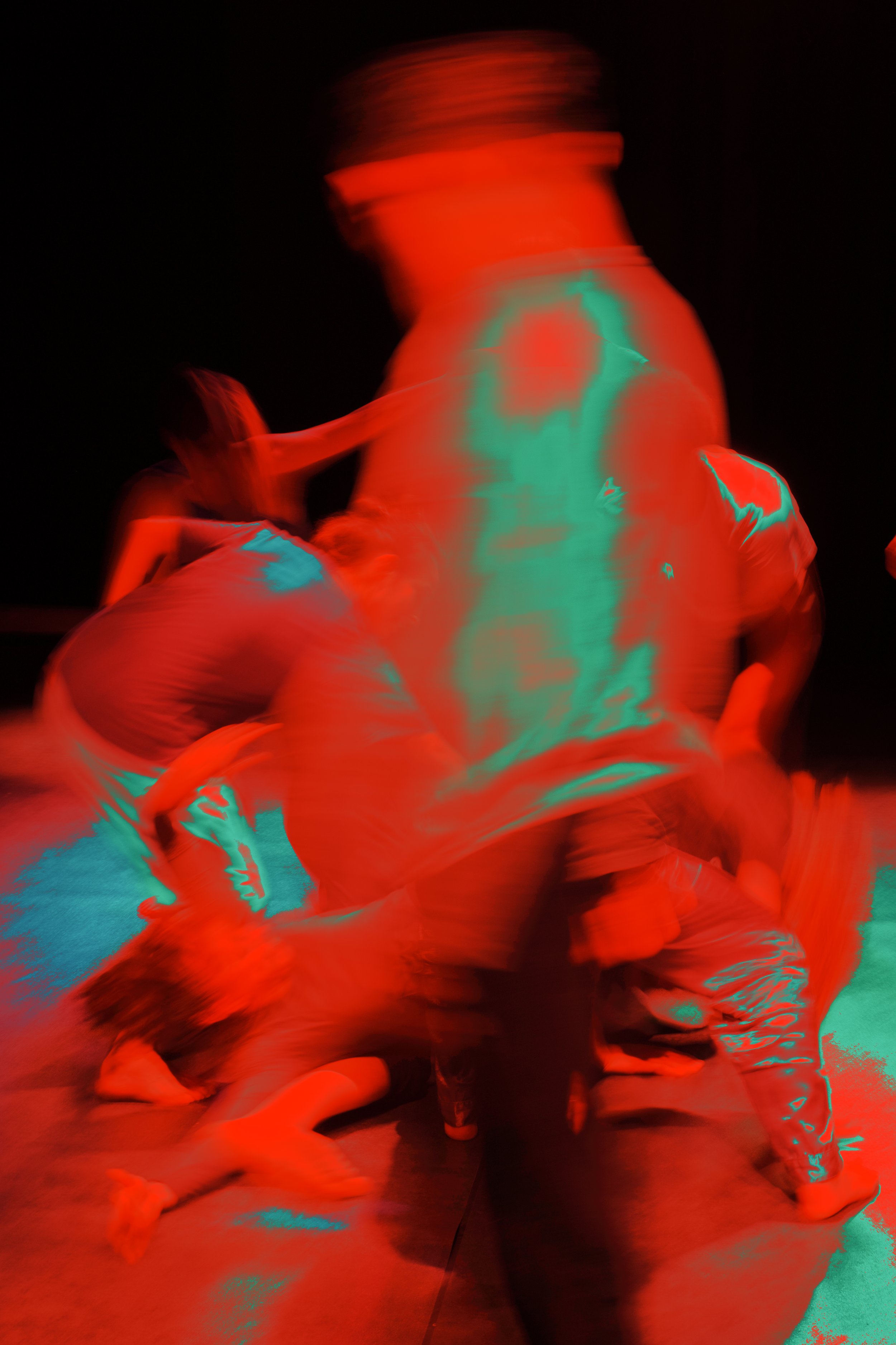 Face à la persistance de la différenciation sexuée dans l’ordre social, je me suis interrogée sur les espaces où cette norme pouvait être troublée. La danse contemporaine, par sa mise en scène du corps et sa relative indépendance des rôles genrés traditionnels, m’a fascinée pour sa capacité à faire émerger d’autres possibles. Sur scène, elle ouvre une brèche dans un monde régi par la binarité. Ces images traduisent une impression persistante du terrain : celle d’un moment suspendu, où les corps s’émancipent des assignations sociales et genrées.